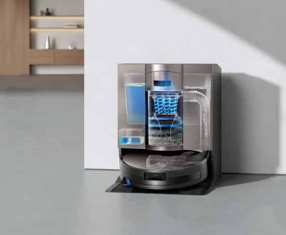 ECOVACS tiên phong tích hợp công nghệ PureCyclone 2.0 Auto-Empty vào Trạm OMNI giúp người dùng hoàn toàn không còn phải thay túi rác. Công nghệ tách bụi lốc xoáy hai tầng mạnh mẽ duy trì lực hút ổn định trong suốt chu trình làm sạch. Sau khi đổ đầy thùng chứa, lượng hao hụt lực hút của OmniCyclone chỉ khoảng 1% so với các hệ thống dùng túi truyền thống. Thiết kế không túi đầu tiên của ECOVACS giúp DEEBOT trở nên thân thiện hơn với môi trường và tiết kiệm chi phí vận hành. Với hộp bụi dung tích lớn 1.6L, DEEBOT có thể vận hành đến 48 ngày mà không cần bảo trì tiết kiệm đến 25 túi rác trong 5 năm, mang lại trải nghiệm làm sạch tiện lợi và bền vững hơn.