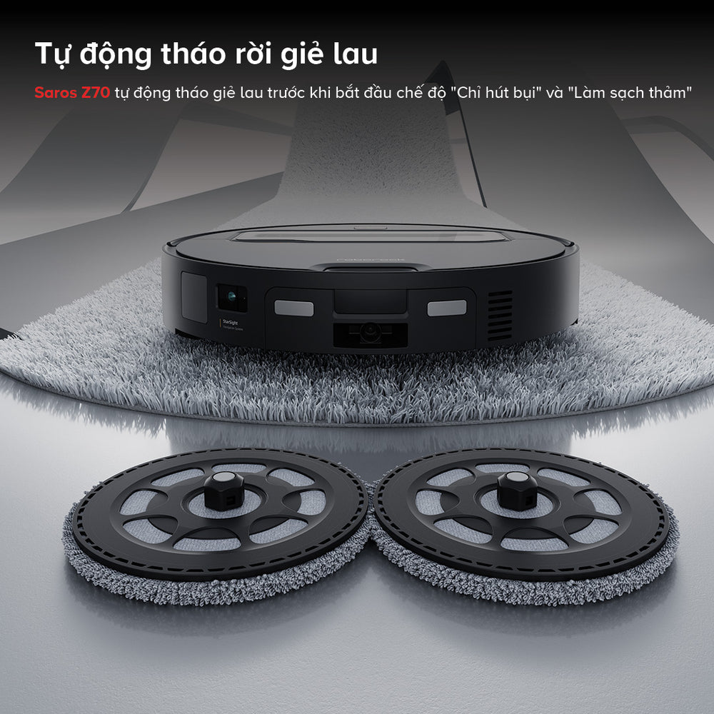 Saros Z70 tự động tháo giẻ lau trước khi bắt đầu chế độ “Chỉ hút bụi” và “Làm sạch thảm”
