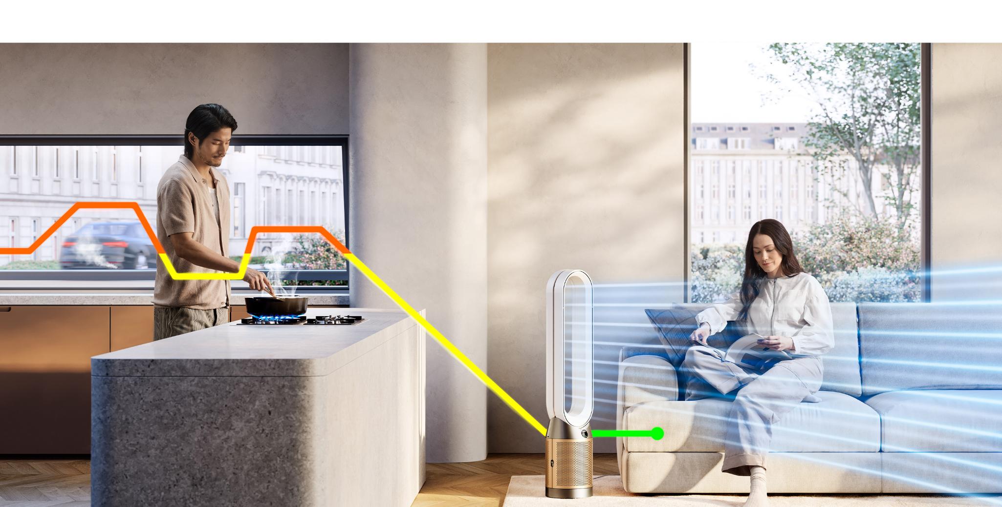 Các cảm biến tích hợp liên tục phân tích không khí, đồng thời thuật toán độc quyền của chúng tôi kiểm tra chéo dữ liệu mỗi giây. Máy chẩn đoán các chất gây ô nhiễm ở cấp độ phân tử, hiển thị kết quả trực tiếp trên màn hình LCD và trong ứng dụng MyDyson