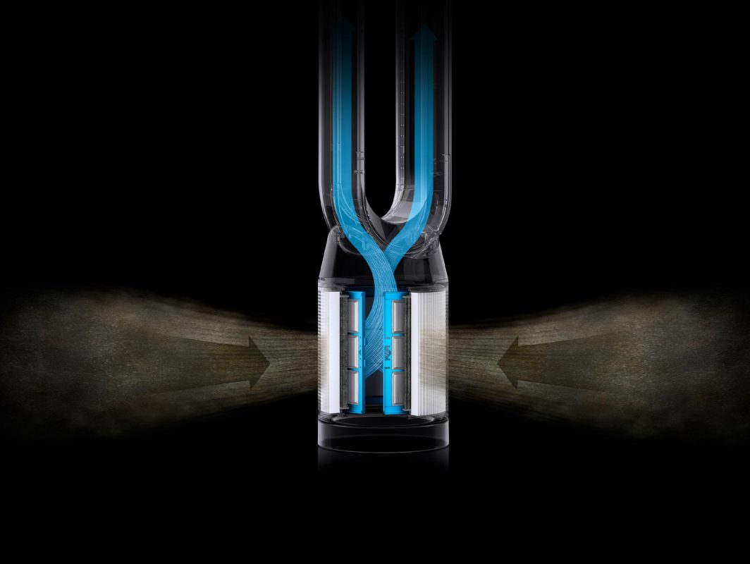 Công nghệ Air Multiplier thổi ra luồng khí êm ái mà mạnh mẽ hơn với công suất 290 lít mỗi giây. Trong khi góc quay 350∘ luân chuyển không khí đã được lọc sạch khắp toàn bộ căn phòng.