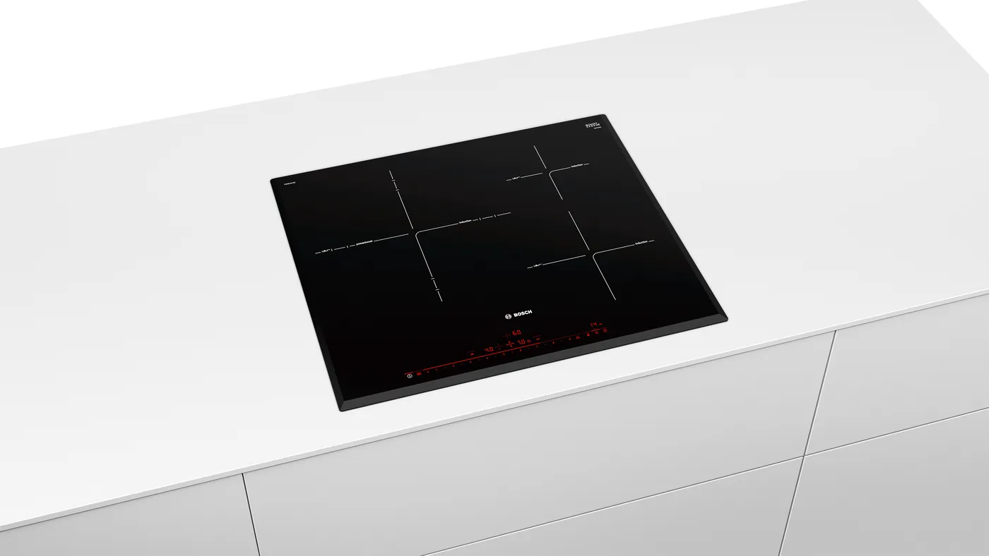 Đây là một trong những giao diện điều khiển trực quan và ấn tượng nhất của Bosch. Khi tắt, bếp là một mặt kính đen tuyền. Khi khởi động, dải điều khiển cảm ứng dài 30cm sẽ phát sáng, cho phép bạn chọn trực tiếp 17 mức công suất, nhiệt độ và các tính năng chỉ bằng một cú chạm lướt mượt mà, loại bỏ hoàn toàn các thao tác “+/-” truyền thống.