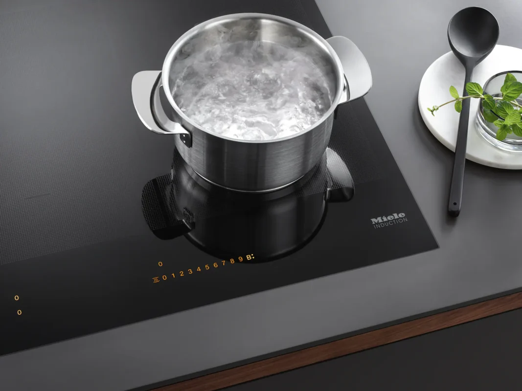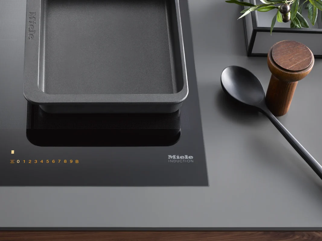 Bếp từ Miele KM 7464 FR với 4 vùng nấu định nghĩa lại sự sang trọng trong căn bếp, nơi vẻ đẹp đẳng cấp đến từ chính vật liệu cấu thành: sự kết hợp hoàn hảo giữa mặt kính gốm đen tuyền cao cấp và khung thép không gỉ vát cạnh tinh tế, không chỉ mang lại thẩm mỹ vượt trội mà còn đảm bảo độ bền bỉ và bảo vệ mép kính an toàn.