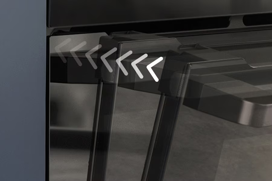 Cửa kính ba lớp giữ cho lò luôn mát khi chạm vào, ngay cả khi đang hoạt động ở nhiệt độ tối đa. Mặt kính bên trong giúp tăng độ an toàn, chống vỡ và phản nhiệt trực tiếp trở vào lò.