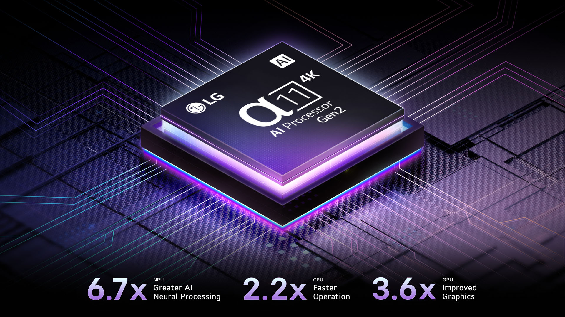 Bộ xử lý AI alpha 11 Gen 2 nâng cấp hình ảnh chuẩn 4K với màu sắc và độ sáng ấn tượng. AI nhận diện vật thể với độ chính xác từng điểm ảnh, tối ưu chất lượng hiển thị để mang đến trải nghiệm xem hoàn hảo.