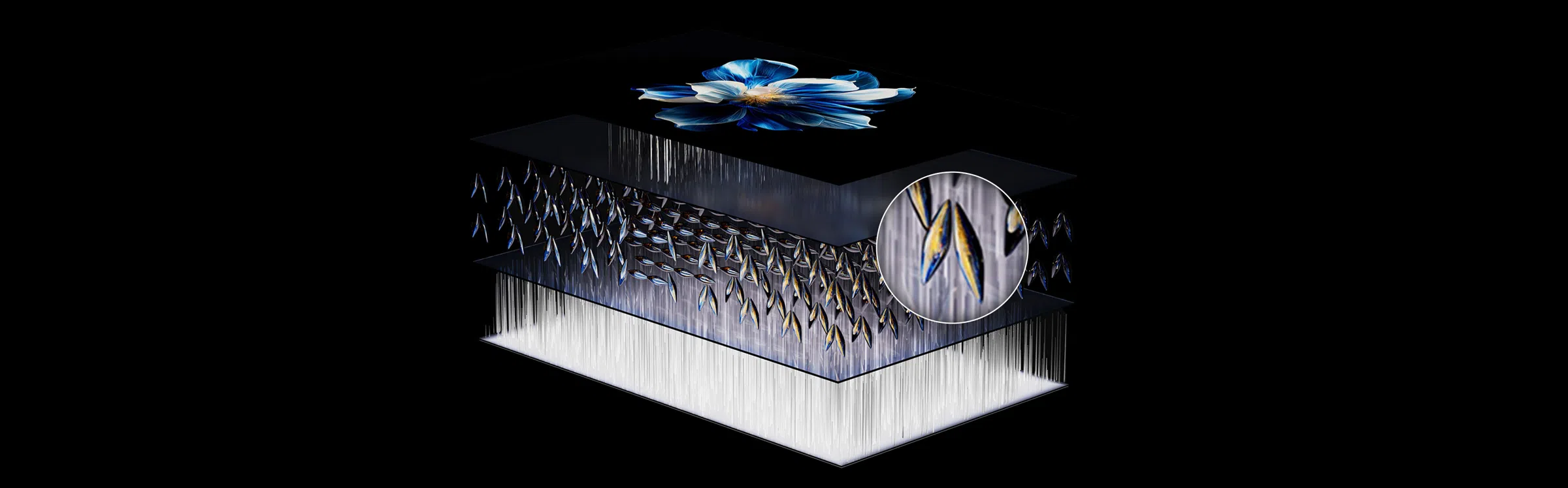 TCL QLED sử dụng tinh thể lượng tử đa sắc, tích hợp vật liệu chấm lượng tử nano với vật liệu hữu cơ. Cùng với công nghệ đèn nền, bước đột phá này đạt được hiệu suất quang học và màu sắc vượt trội. Mỗi khung hình đều thể hiện xuất sắc hơn một tỷ sắc thái màu sắc sống động hoàn hảo, thể hiện màu sắc sống động tuyệt đẹp. Độ sáng được tăng cường làm sáng rõ hơn các chi tiết một cách tinh tế, mang đến trải nghiệm xem đắm chìm và sống động, bật lên những sắc thái ẩn giấu.
