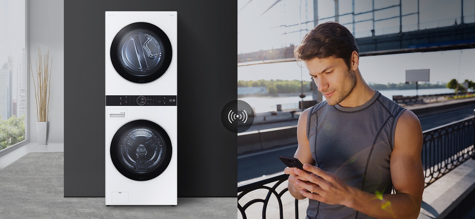 Ứng dụng LG ThinQ™ cho phép bạn dễ dàng kết nối với WashTower™ theo cách chưa từng có trước đây. Bắt đầu giặt và sấy chỉ bằng một nút nhấn.