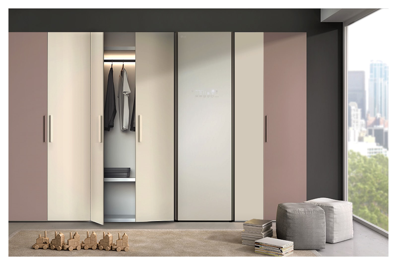 LG Styler™ Objet Collection có thiết kế kiểu dáng đẹp cho một không gian cân đối, hiện đại.